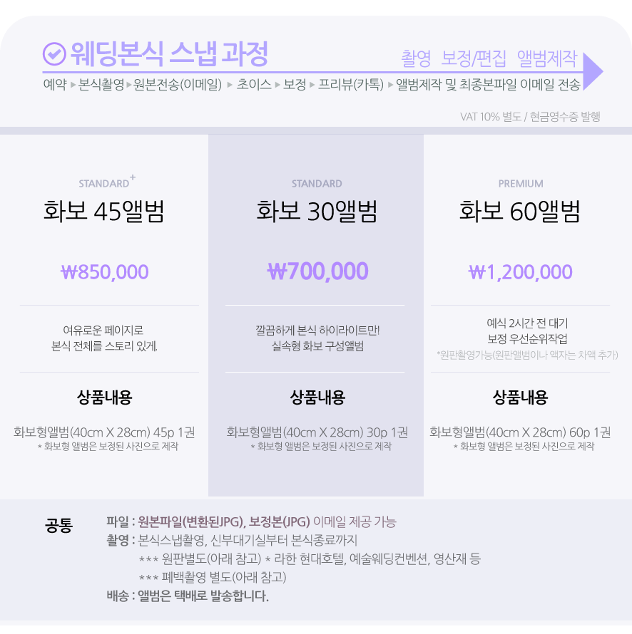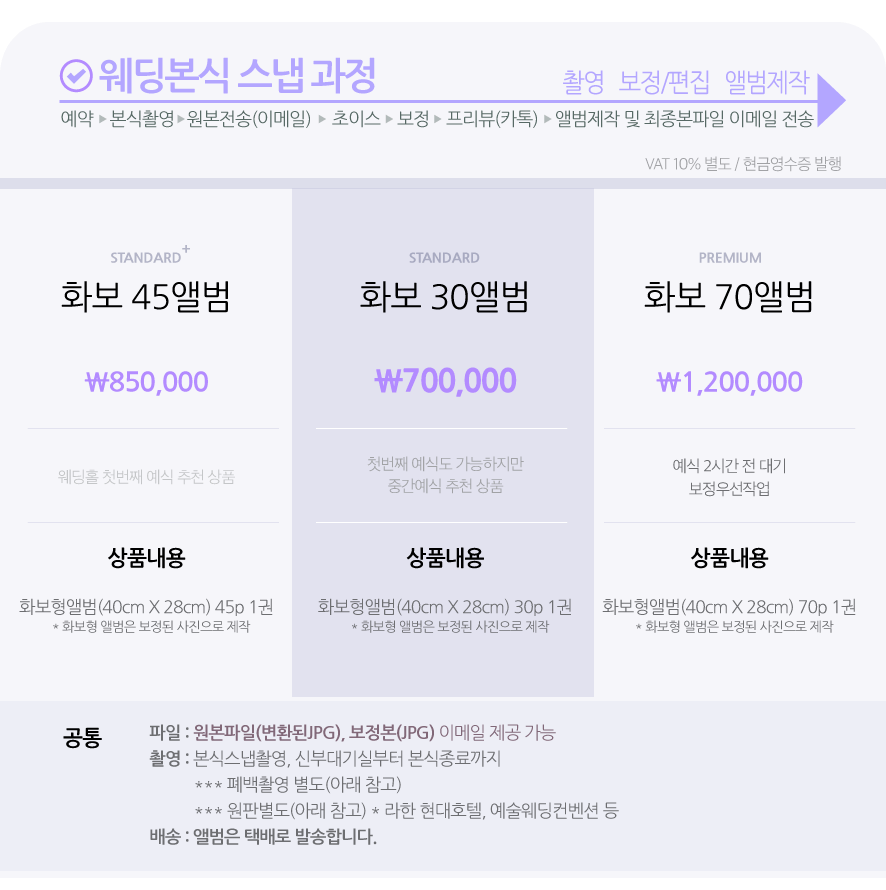 *1차작업 : 촬영된 모든 원본파일은 기초보정(표준노출색상) 작업과 파일 변환과정을 거쳐 이메일로 전송됩니다.