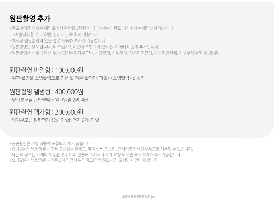 *요나필름에서 촬영된 모든 사진의 저작권은 요나필름(주요나)에게 있으며 어떠한 경우에도 양도하지 않습니다.