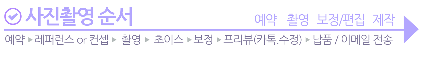 1) 최종본 사진은 1회 추가 수정이 가능합니다. 회차당 수정 비용은 추가 될 수 있습니다.